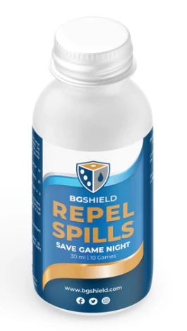 BGSHIELD protects your games from damage caused by many kinds of spills including water, coffee, tea, wine, beer, juice, and soda. It also helps repel stains and stickiness from fingerprints and many types of food.