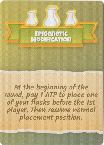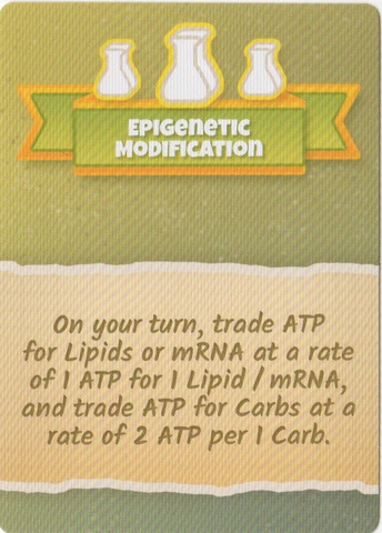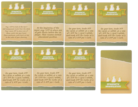 Each Epigenetic Modification Card gives a player a unique ability that they may use throughout the game.