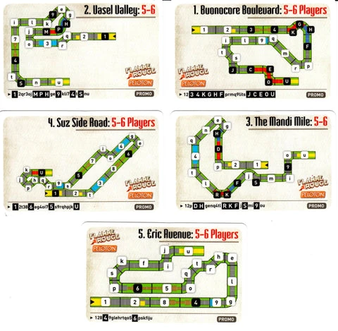 Features 5 double sided cards with one side for 2-4 players, and the other 5-6 players.