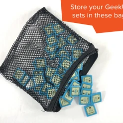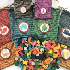 A set of eight drawstring bags to store each character from Vast. These are sublimation printed microfiber bags, with the bags measuring 16 cm deep by 13 cm wide.
