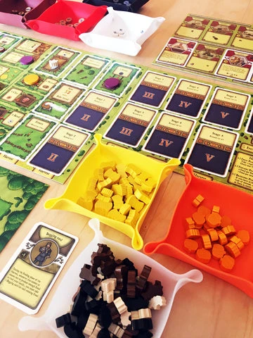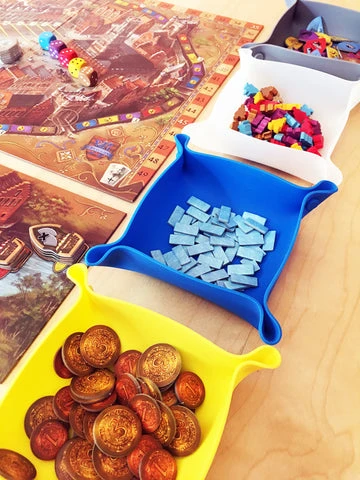 When lying flat, the large bowls measure 6″ x 6″, and the small bowls measure 4.5″ x 4.5″, easily fitting into most game boxes. When folded into bowls, they are the perfect size to hold the bits to nearly any game. Mix and match colors for a custom set for your favorite game, or grab an entire set of all 13 colors at a discounted rate!