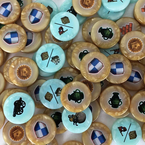 Bits ho! Give your empire a head start in amassing glory with these GeekUp bits for all 95 of the trade tokens featured in the 2018 edition. Featuring both original artwork from the 2018 edition of the game and a swirled plastic for a metallic appearance, these bits are sure to bring you glory to the gaming table!