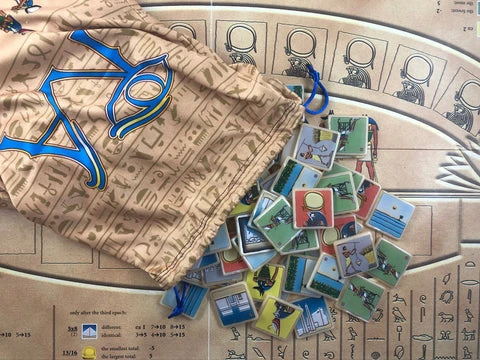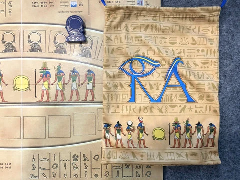 Reiner Knizia is one of the most well-known game designers in the world, and his classic auction game Ra has been in print continually for over 12 years. Celebrate this classic game with this exquisite set of GeekUp tiles and VP tokens, as well as a custom drawbag featuring artwork from the game. Please note --> this GeekUp set uses the original artwork by Franz Vohwinkel, found in every printing of the game EXCEPT for the most recent (by Windrider Games).