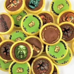This set contains replacements for all 24 of the treasure wafers in Tikal, with three copies of each treasure, and the neutral image on the backside. Plastic is made with a pearlescent finish to give it a truly gold-like appearance.