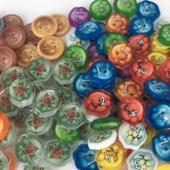 One set of GeekUp tokens for Wingspan includes 69 Nectar tiles, all 20mm pearlescent circles that are 4mm deep.