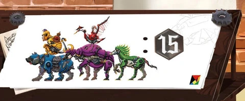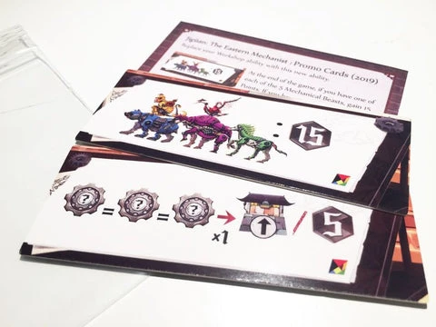 – At the end of the game, if you have one of each of the 5 Mechanical Beasts, gain 15 Points. If you have 2 sets, get 30 Points.