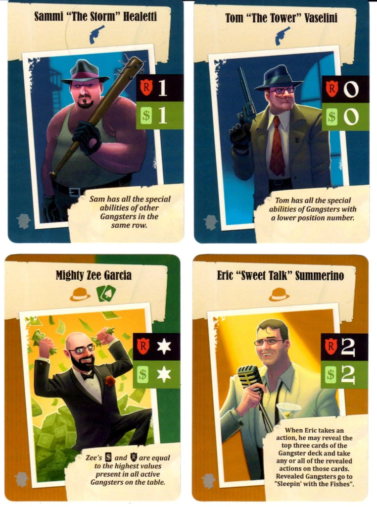- Tom “The Tower” Vaselini: Tom has all the special abilities of gangsters with a lower position number.