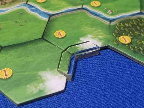 120° 2mm clips – These will work great for Gaia Project, Mage Knight, Clans of Caledonia, Twilight Imperium, older versions of Catan that don’t have the border tiles. Will work with any game that uses hex tiles of 1.75 – 2.3mm