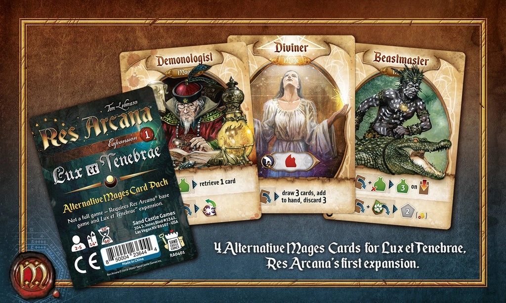 4 alternative mage cards for use with Res Arcana: Lux et Tenebrae. The titles and powers of the cards are the same as those included in the expansion, but this pack features alternative and unique artwork for each card.