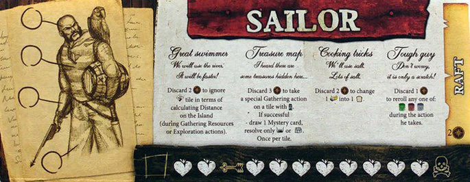 The sailor is also tough. He can discard 1 determination token to re-roll an injury die (brown, grey or green).