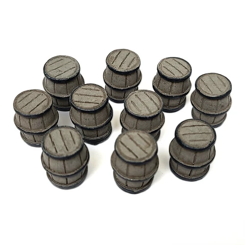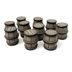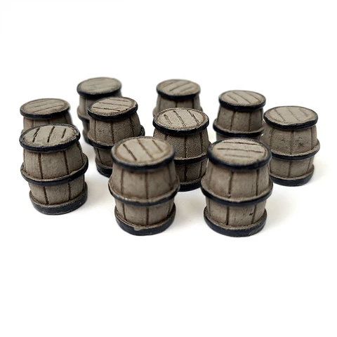 A set of 10 resin-made Barrel Tokens measuring ~ 13mm in diameter and 16mm high. Use them in any game you please to enhance your bits or for prototyping the next big title!