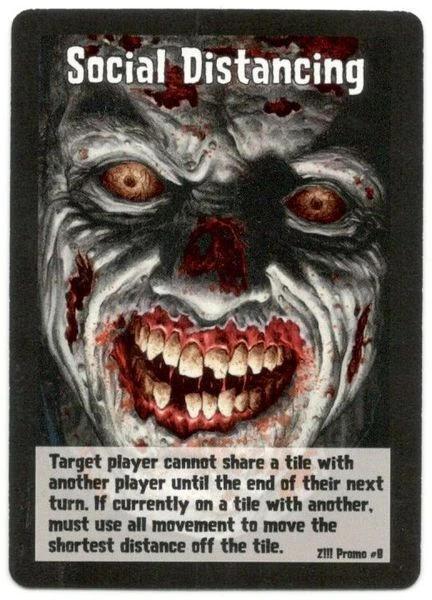 Target player cannot share a tile with another player until the end of their next turn. if currently on a tile with another, must use all movement to move the shortest distance off the tile.